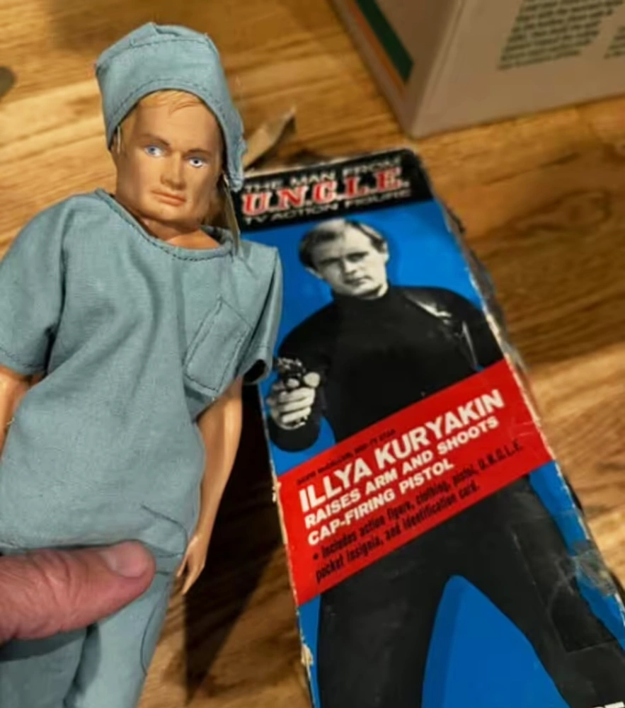 “Fun story with this one,” Dietzen wrote. “A fan sent me this original Man From U.N.C.L.E. toy several years ago. Then I read the letter enclosed and discovered that this person had hand-sewn scrubs for the doll so it could be a Jimmy Palmer/Illya Kuryakin mashup-two of their favorite shows in one box!”